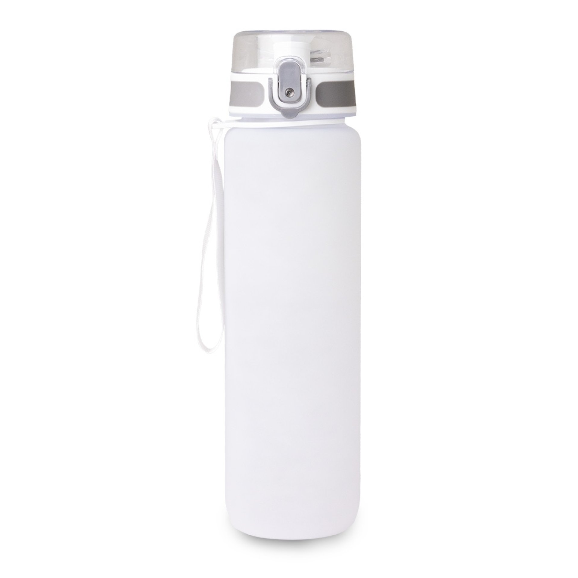 Squeeze plástico com capacidade de 1 Litro, possui tampa rosqueável com botão de acionamento, trava de segurança e alça para transporte.
