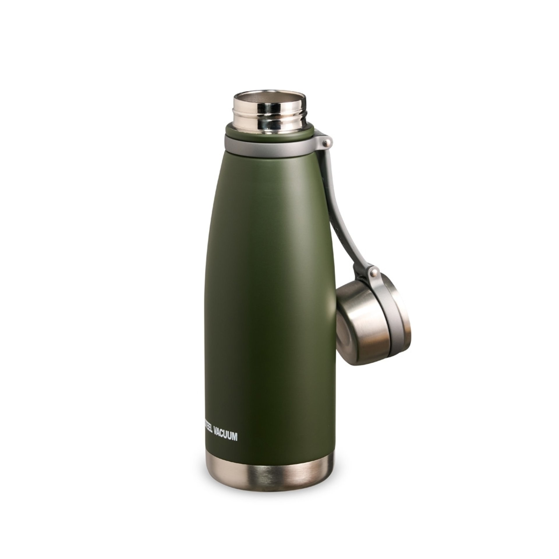 Garrafa térmica com infusor de bebidas, feita em inox 316 com capacidade de 800ml e alça de silicone acoplada na tampa.