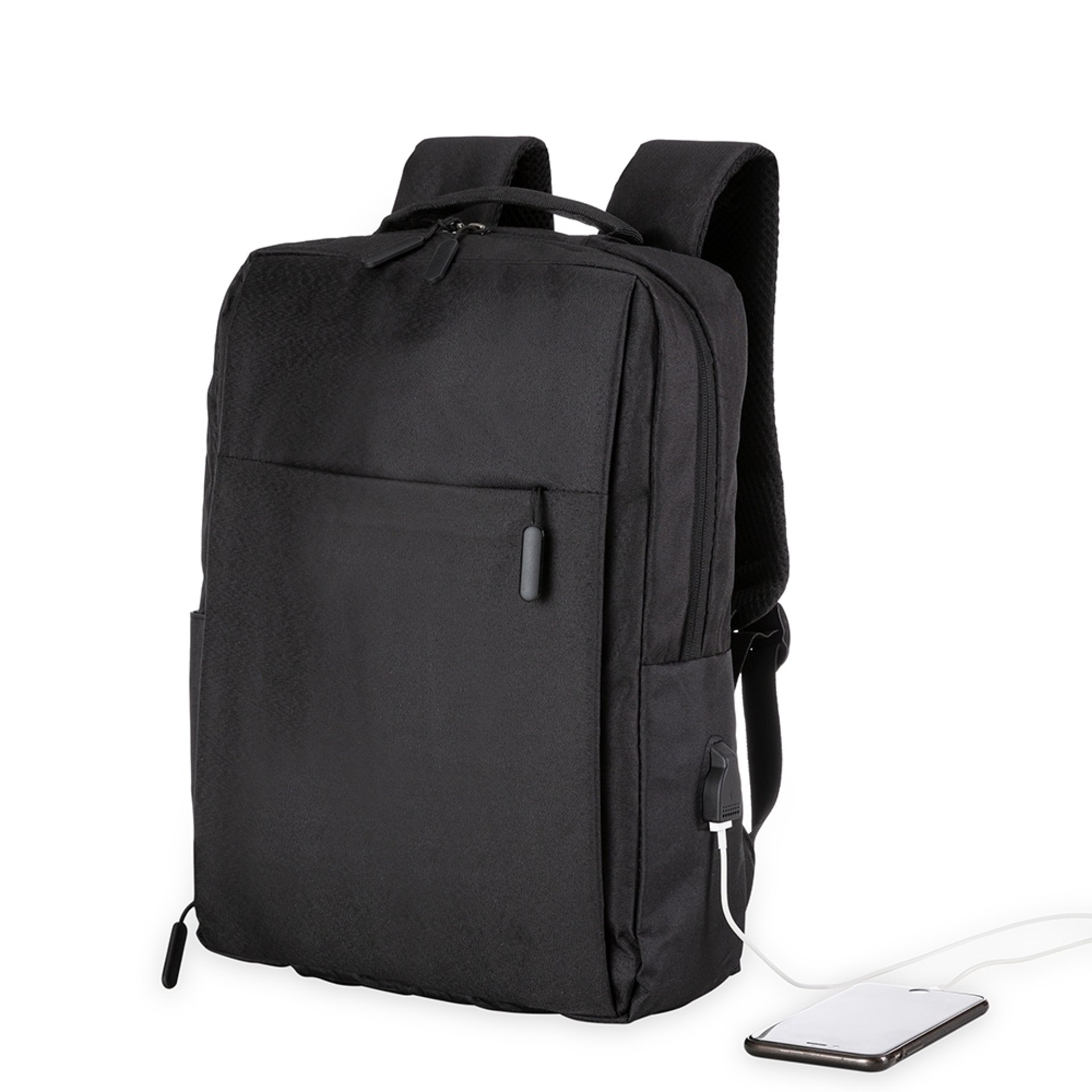 Mochila de nylon 21 litros com três compartimentos, sendo o principal com bolso para notebook 15,6. Com divisórias internas para acessórios, a mochila possui bolso lateral e suporte externo usb.