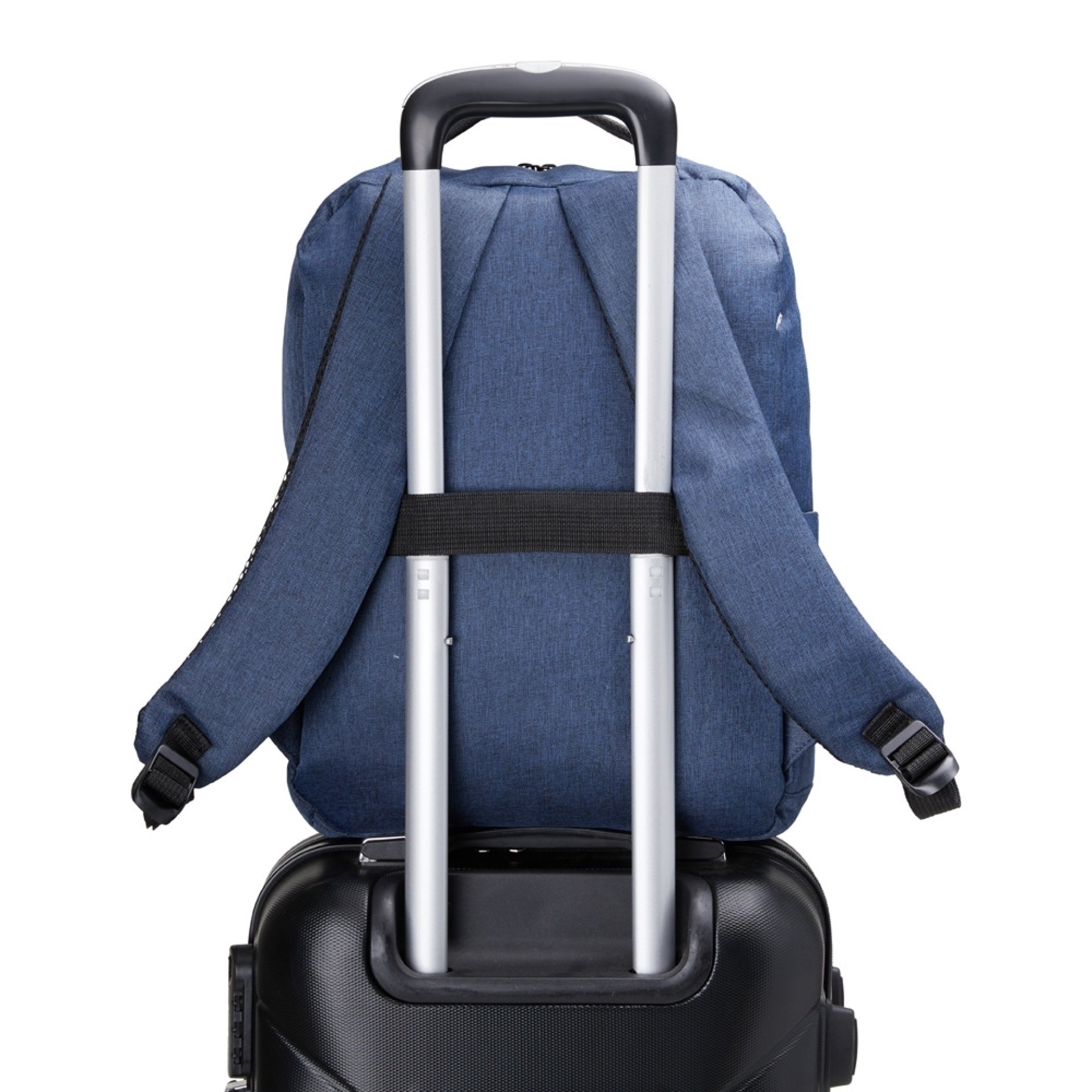 Mochila de nylon 22 Litros com detalhes em couro sintético e três compartimentos, sendo o principal com bolso para notebook 15,6. Mochila possui bolso lateral e suporte externo usb.