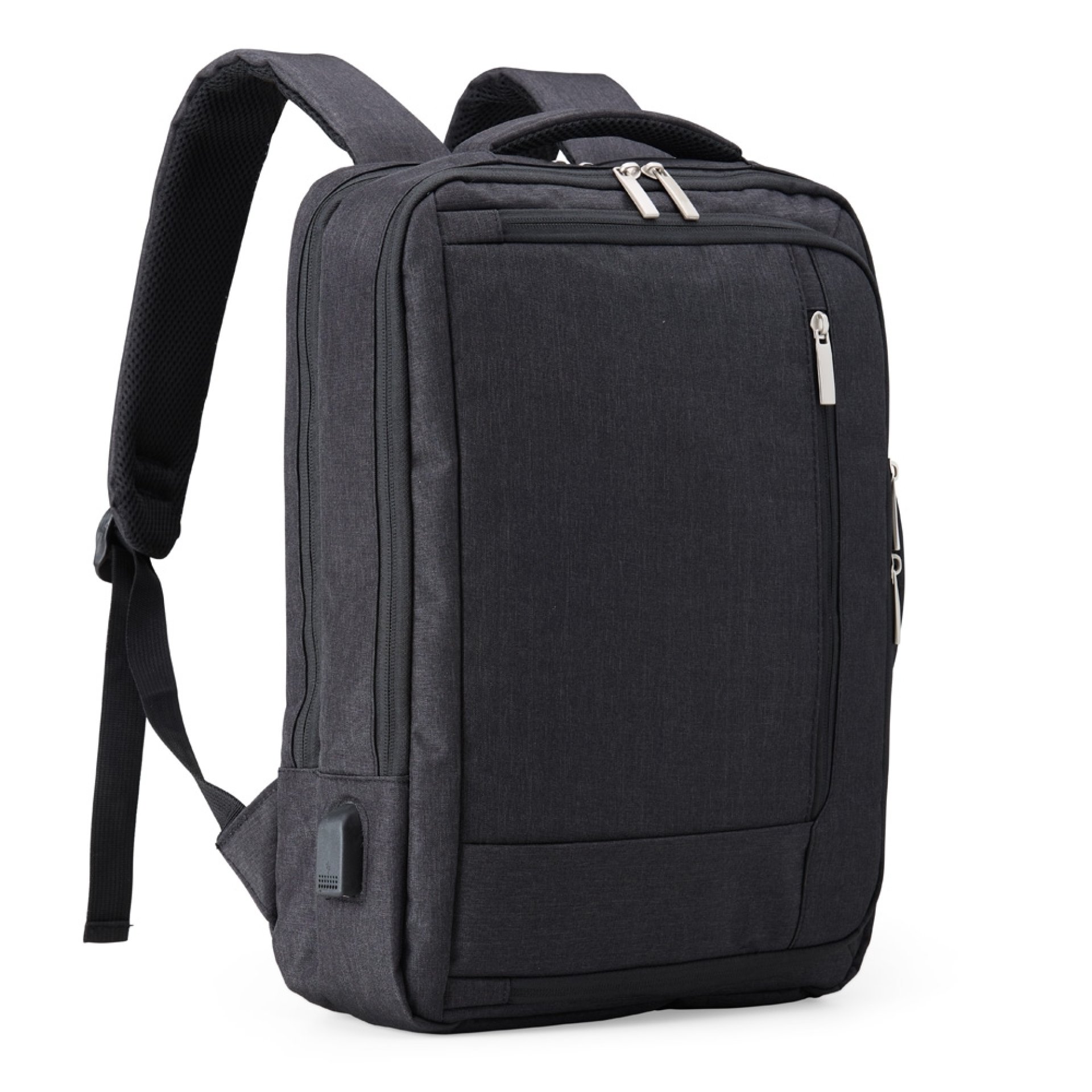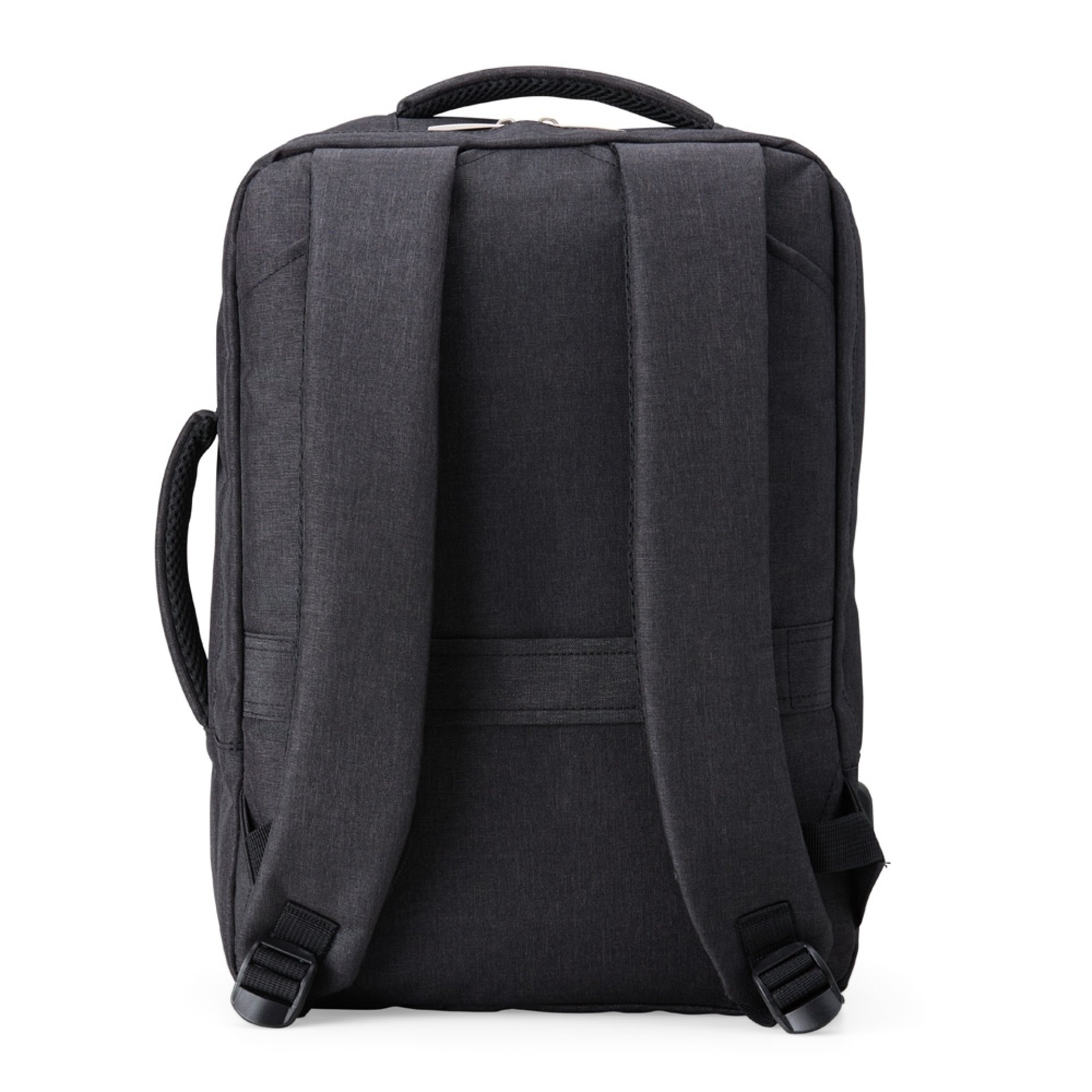 Mochila de poliéster 19 litros com 4 compartimentos, sendo o principal com bolso para notebook 15,6 e compartimento com bolso sanfonado, ideal para documentos. Com divisórias internas para acessórios, a mochila possui suporte externo USB, alça para engate em malas de viagem e duas alças de mãos, sendo uma delas para o transporte da mochila no formato pasta.