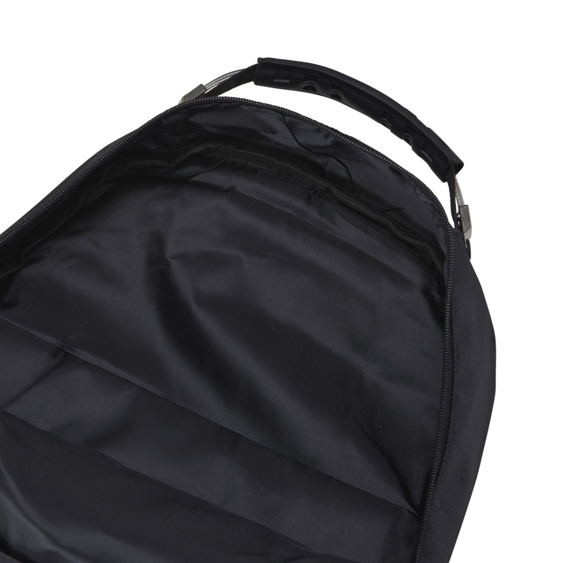 Mochila de nylon 30 litros com quatro compartimentos, sendo o principal com bolso para notebook 15,6. A mochila possui bolsos laterais em malha, duas alças de mãos e área costada com revestimento espumado.