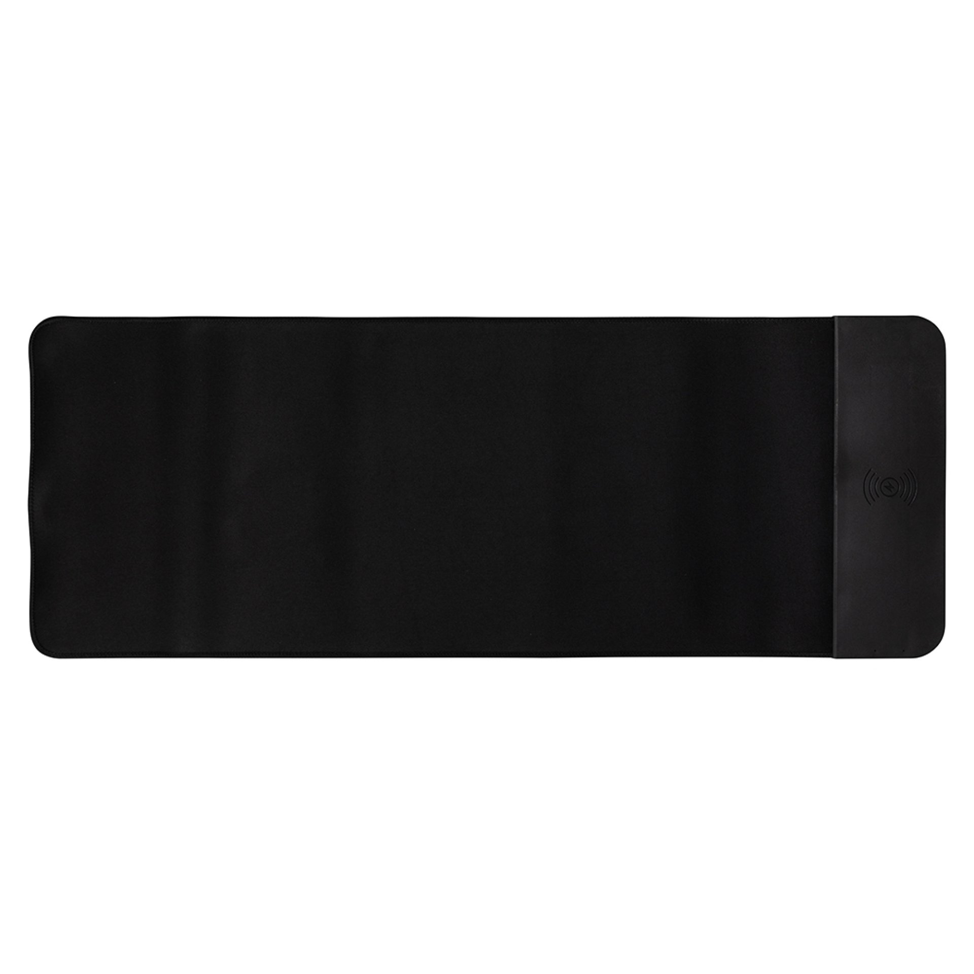 Descrição: Desk Pad carregador por indução. O Produto pode ser colocado sobre a mesa com espaço suficiente para seu mouse e teclado, ainda oferecendo uma estação de carregamento wireless em sua parte lateral. O produto acompanha cabo USB.
