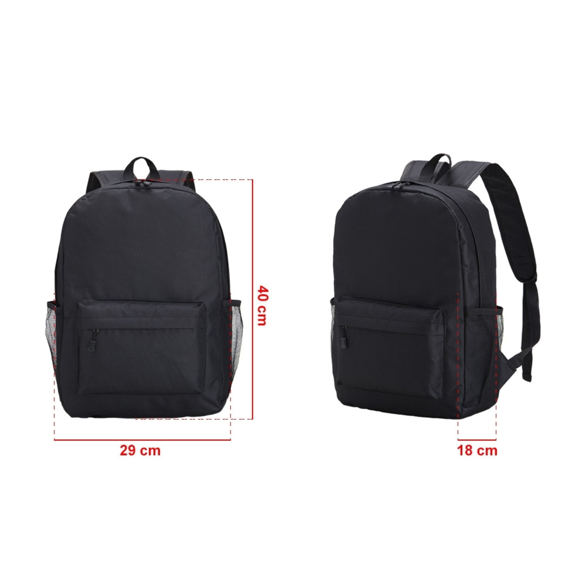 Mochila de Nylon 20 litros com dois compartimentos, sendo principal com bolso raso para notebook 15.6. Contém bolsos laterais telados.