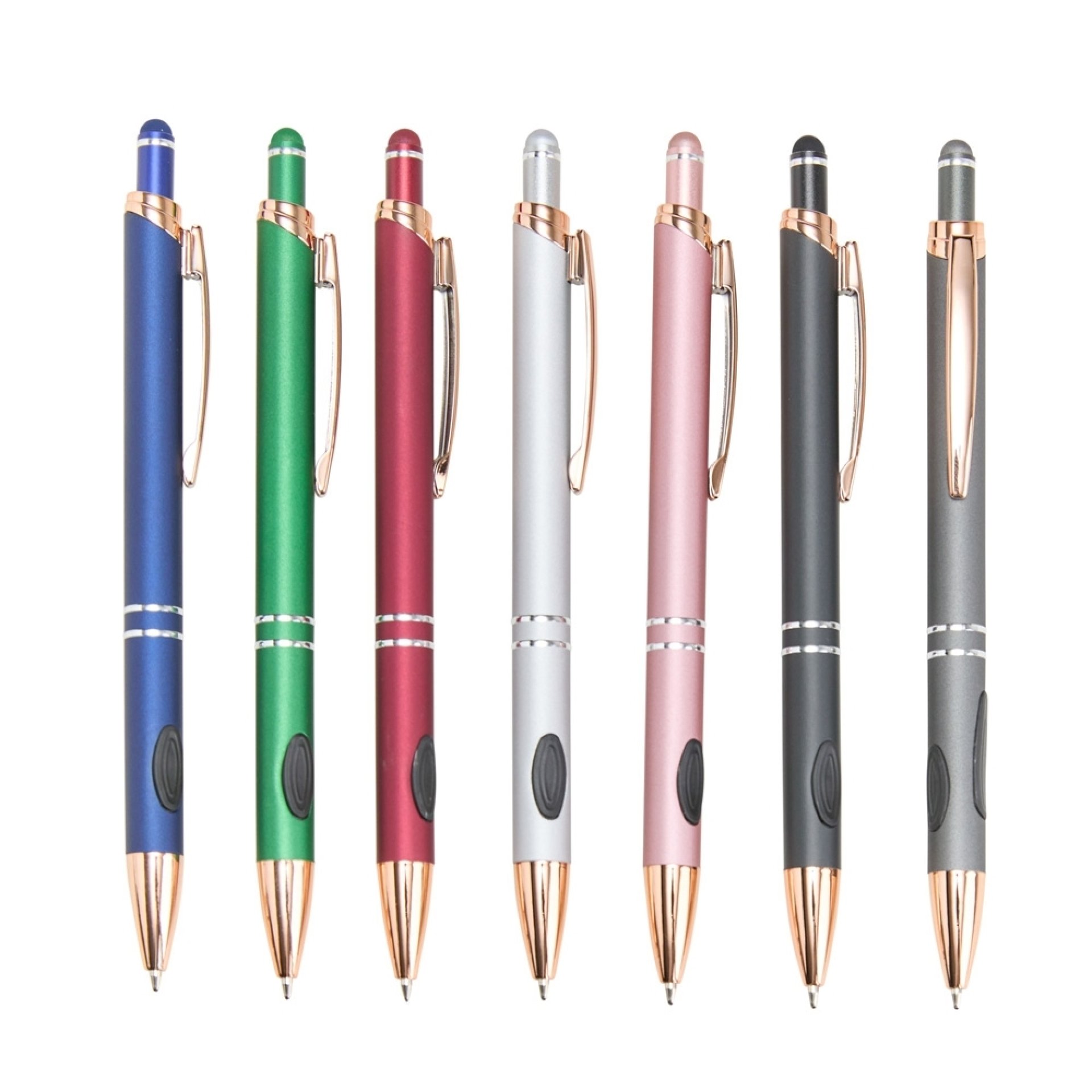 A elegância e o conforto combinados em uma única caneta esferográfica para garantir uma escrita mais agradável através da sua construção metálica e seu par de grips em borracha, além de ponta e clipe em plástico. Sua carga azul de 1.0 mm possui acionamento por clique com ponteira emborrachada que que permite seu uso como uma caneta touch para interação com smartphones, tablets e demais dispositivos de telas touchscreen.