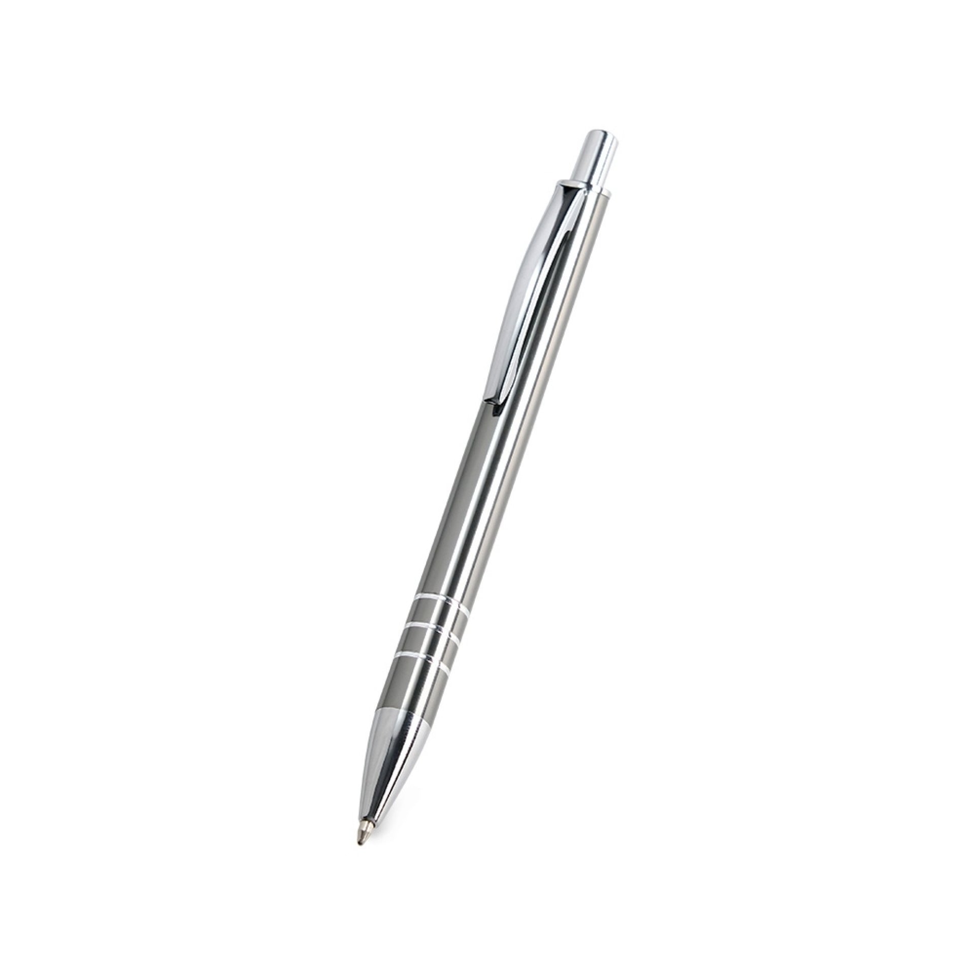 Caneta metálica, acionamento por clique e carga esferográfica azul 1.0mm.
