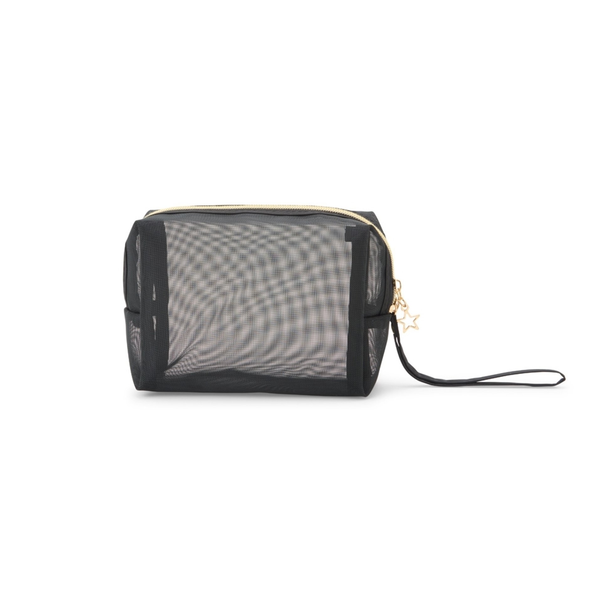 Nécessaire confeccionada em malha de nylon. Seu visual em malha, permite uma fácil visualização dos itens em seu interior. Os detalhes em dourado no zíper, adicionam um toque de elegância e sofisticação.