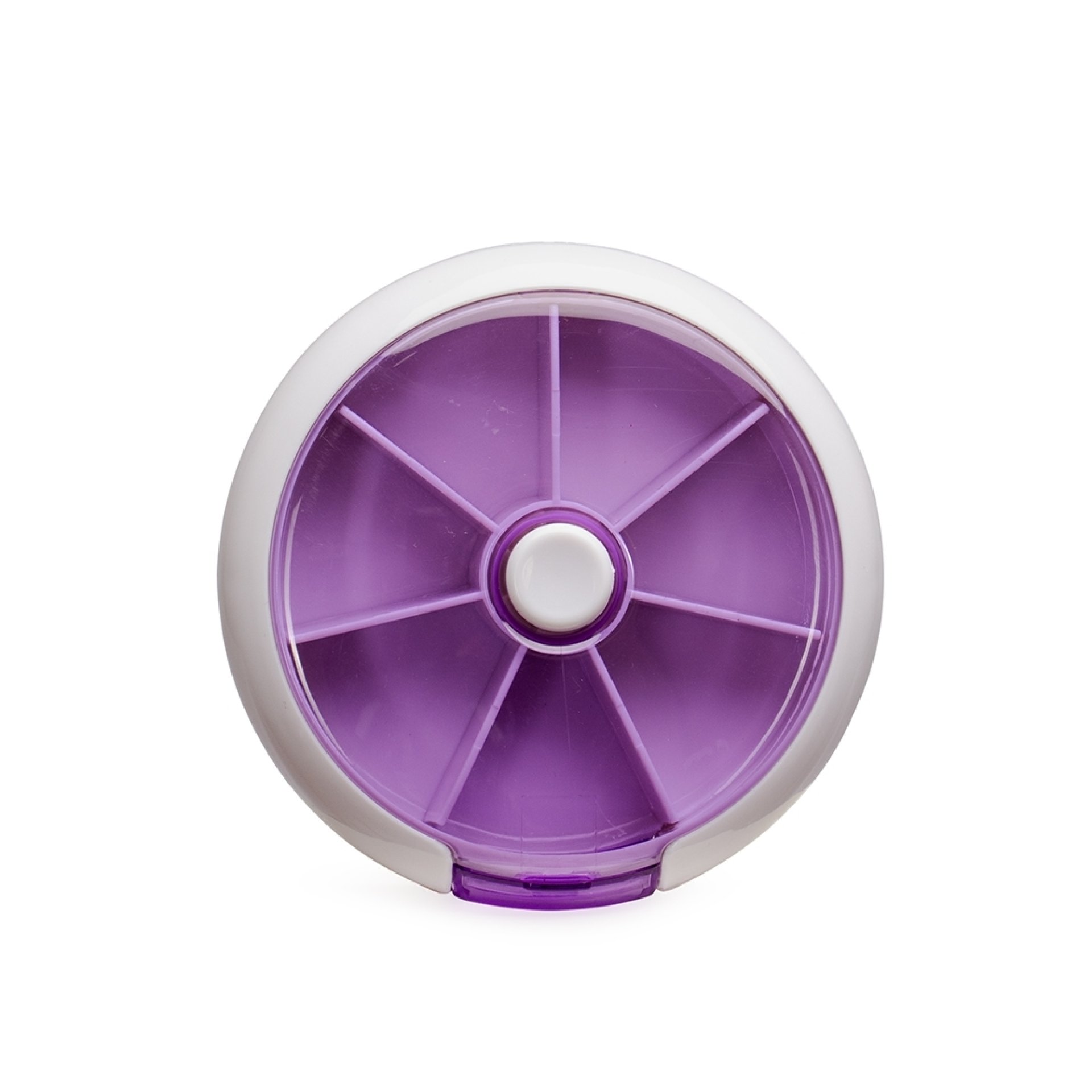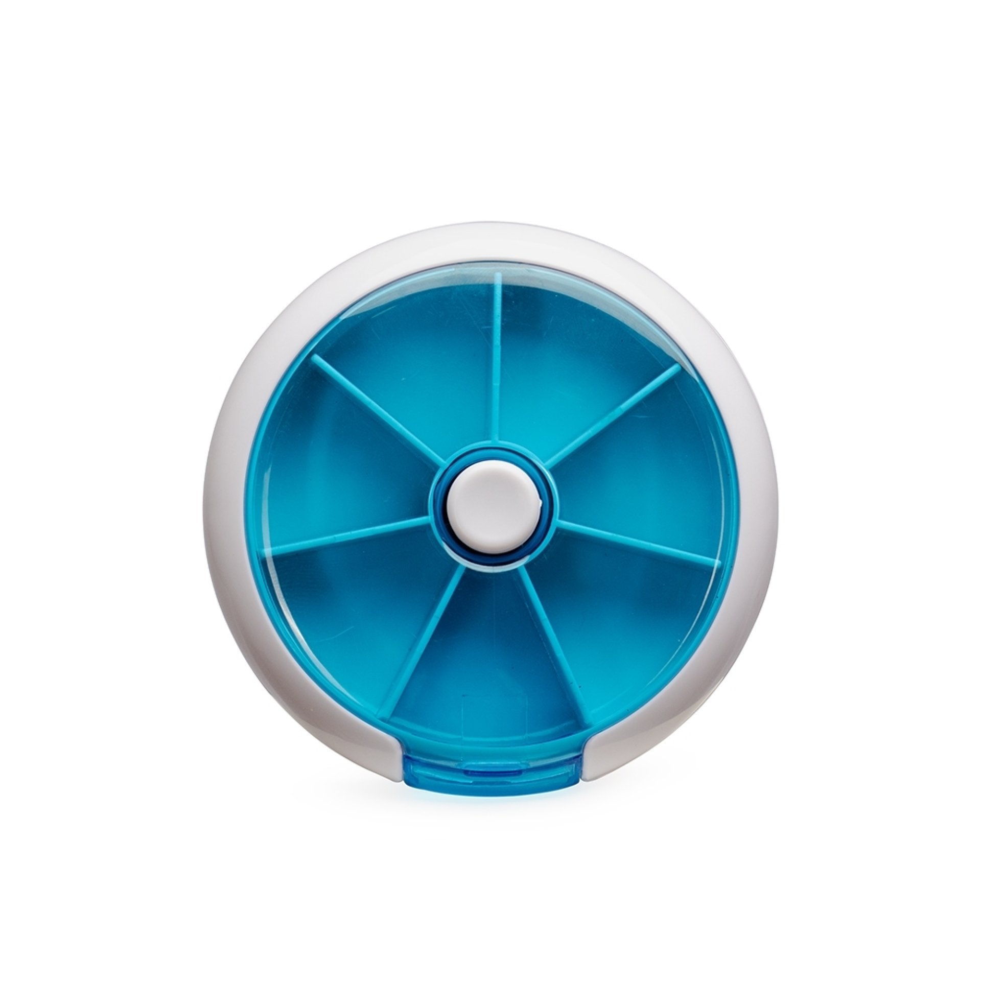 Este porta-comprimidos é uma excelente opção para deixar a rotina de cuidados com a saúde ainda mais prática. Feito em plástico, possui sete divisórias para organizar medicamentos de maneira eficiente e ágil. Com seu botão de acionamento, é possível girar um compartimento a cada clique, permitindo o acesso à medicação do dia, que pode ser retirada pela abertura lateral do porta-comprimidos. Seu tamanho compacto permite levá-lo facilmente para viagens dentro de bolsas, mochilas ou malas.