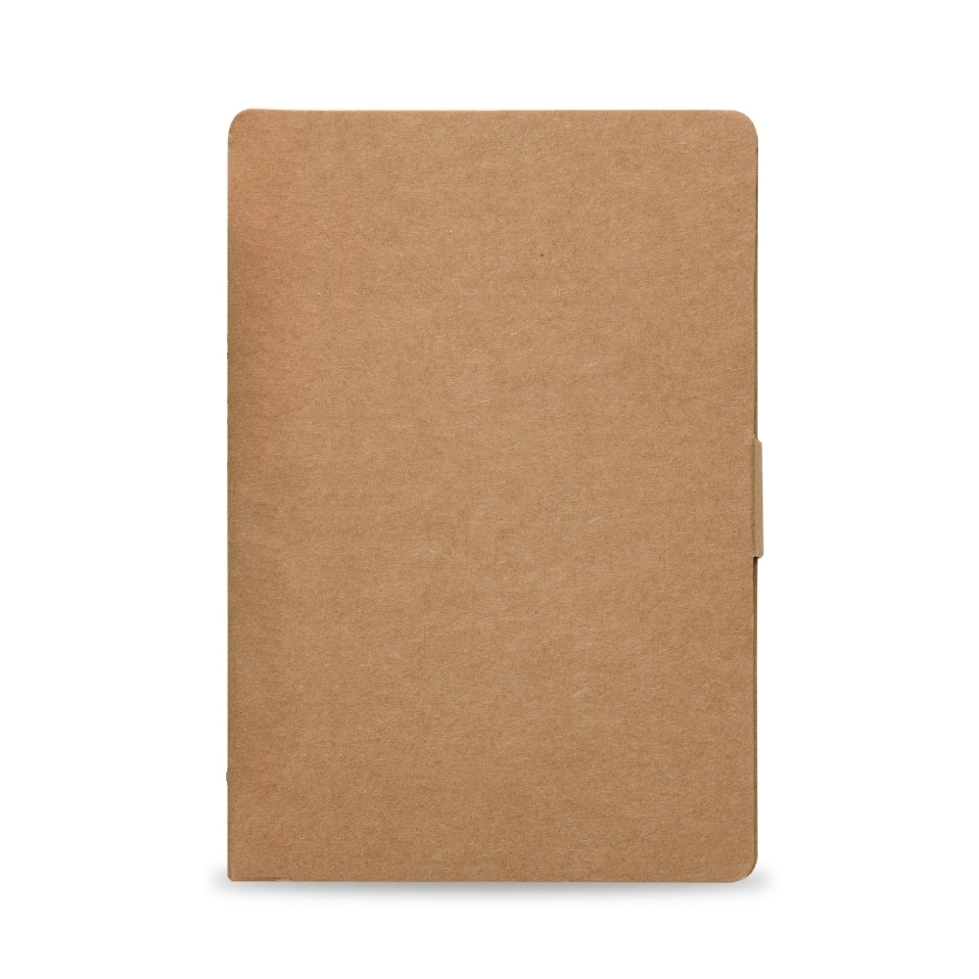 Bloco de anotações ecológico, material em kraft. Possui uma trava na própria capa, cinco blocos autoadesivos coloridos com aproximadamente 25 folhinhas , bloco autoadesivo amarelo com aproximadamente 25 folhas e bloco grande com aproximadamente 70 folhas. OBS.: IMAGEM MERAMENTE ILUSTRATIVA, não acompanha caneta!