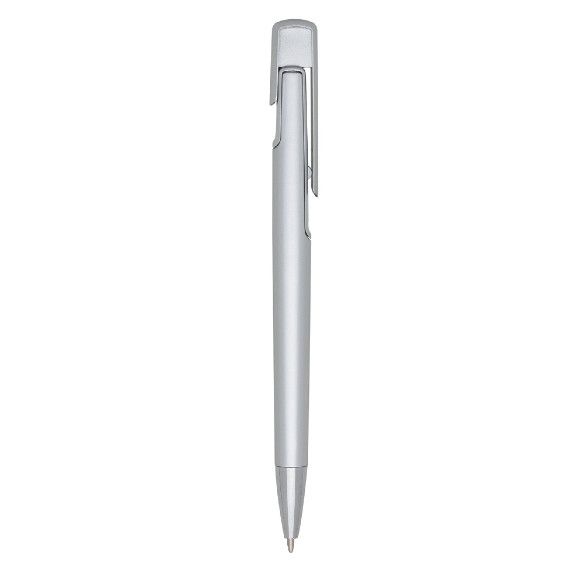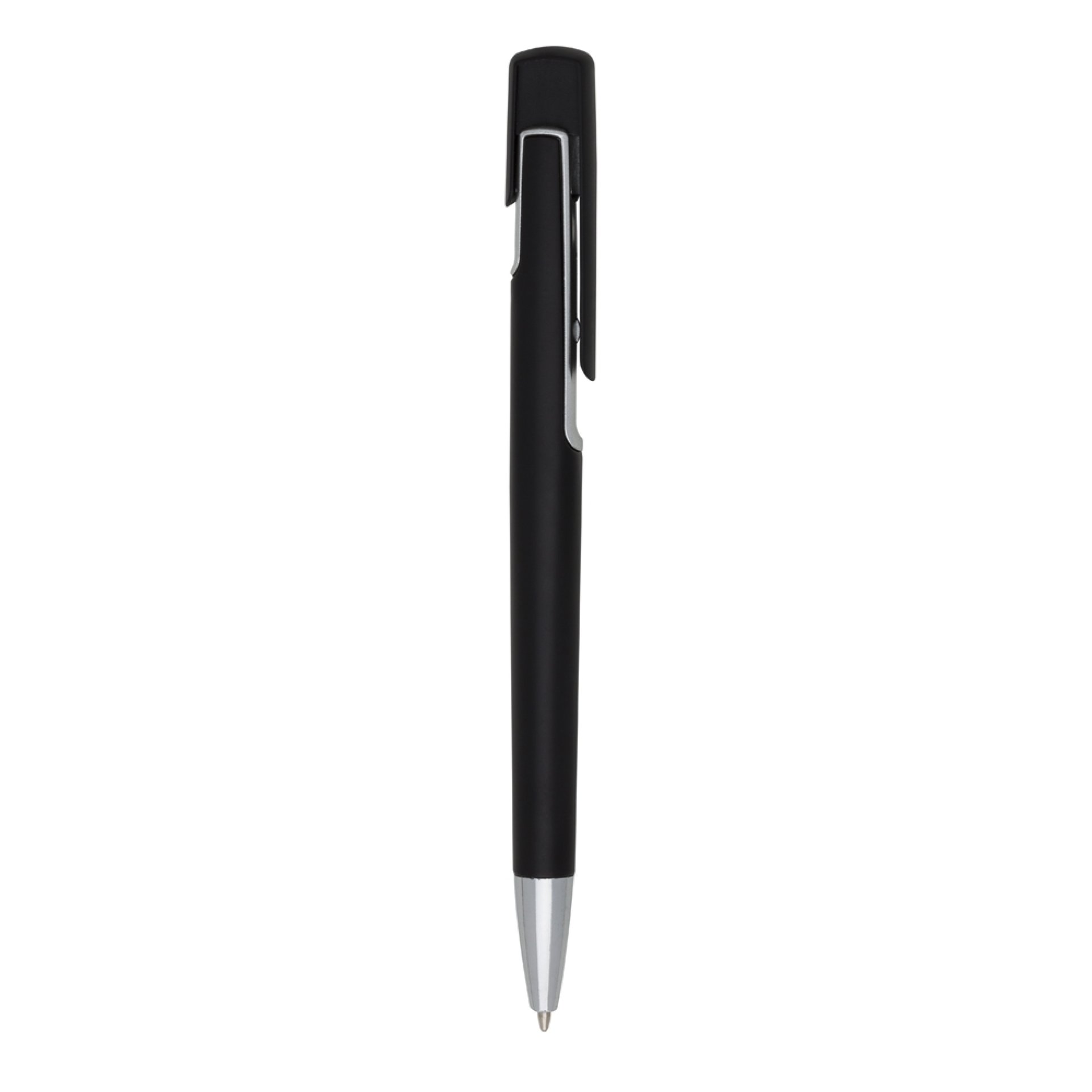 Descrição: Caneta plástica com carga esferográfica azul e acionamento por clique.