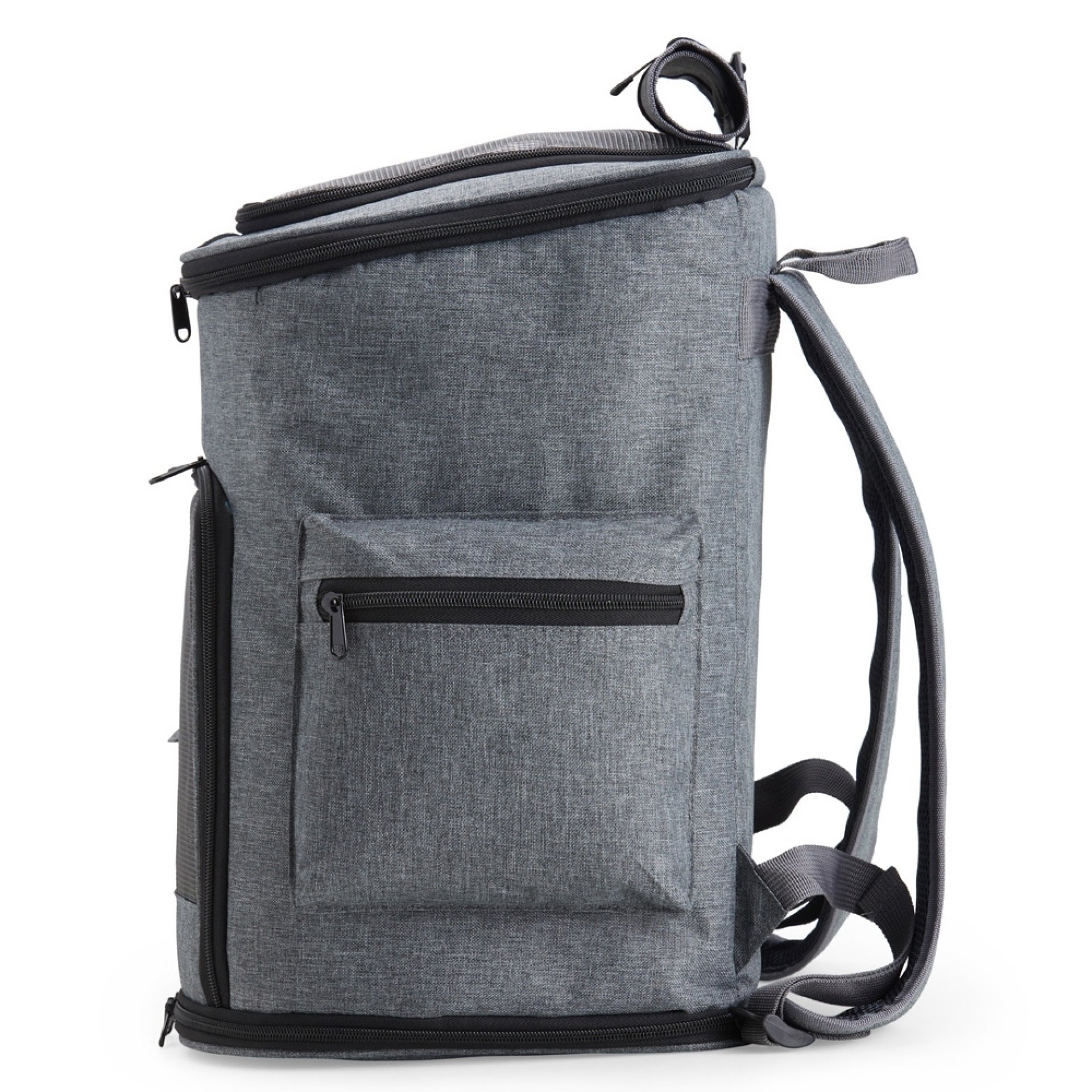 Mochila para transporte de pets, confeccionada em tecido Oxford, apresenta um compartimento lateral e bolsos adicionais. Seu tapete dupla face, com uma camada aveludada, foi projetada para garantir o máximo conforto ao pet. Equipada com telas respiráveis em nylon, esta mochila possui duas aberturas superiores: uma completa e outra parcial, com cobertura ajustável. Além disso, conta com uma abertura frontal parcial e um fundo com abertura completa, proporcionando uma experiência de transporte arejada e prática para entrada e saída do pet. A mochila dispõe de alça de mão e alças para as costas revestidas com material respirável.