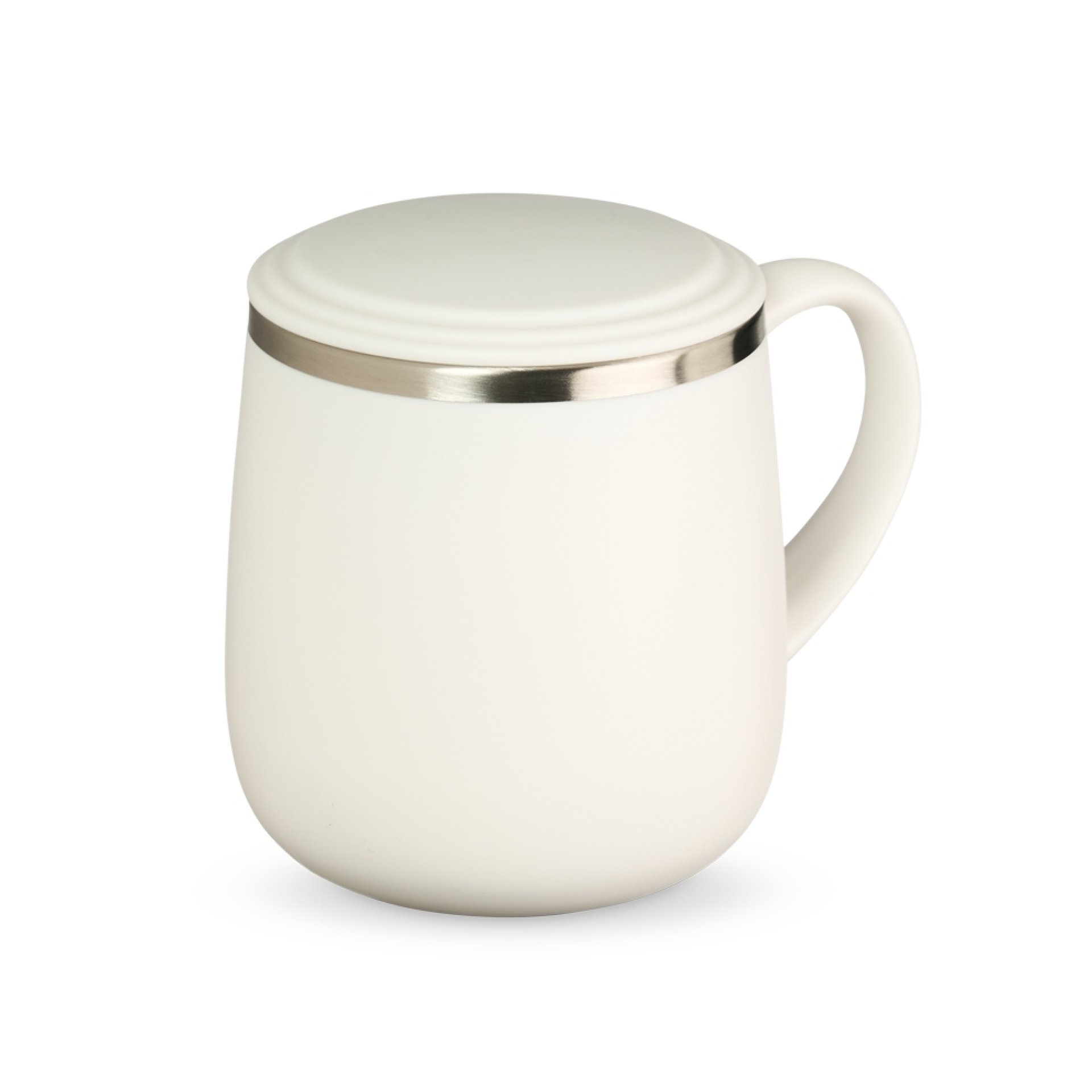 Caneca 370ml plástica com parede dupla em Inox, contém tampa plástica para vedação e base com EVA antiderrapante.