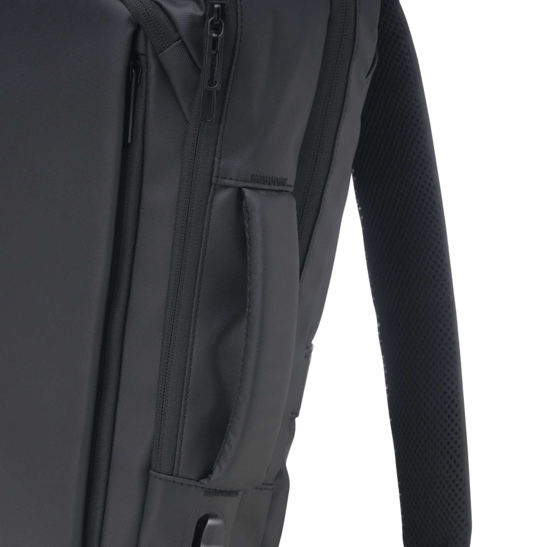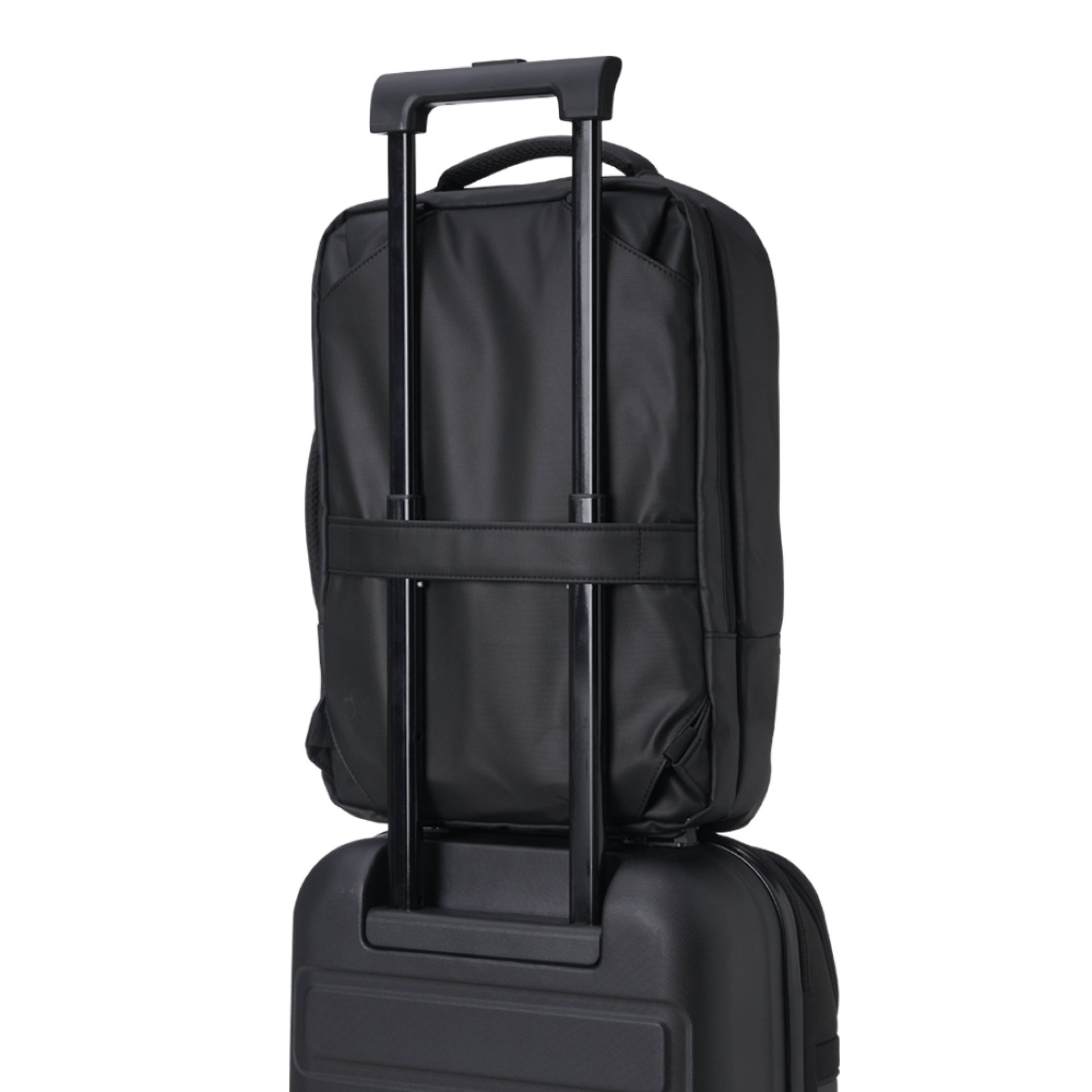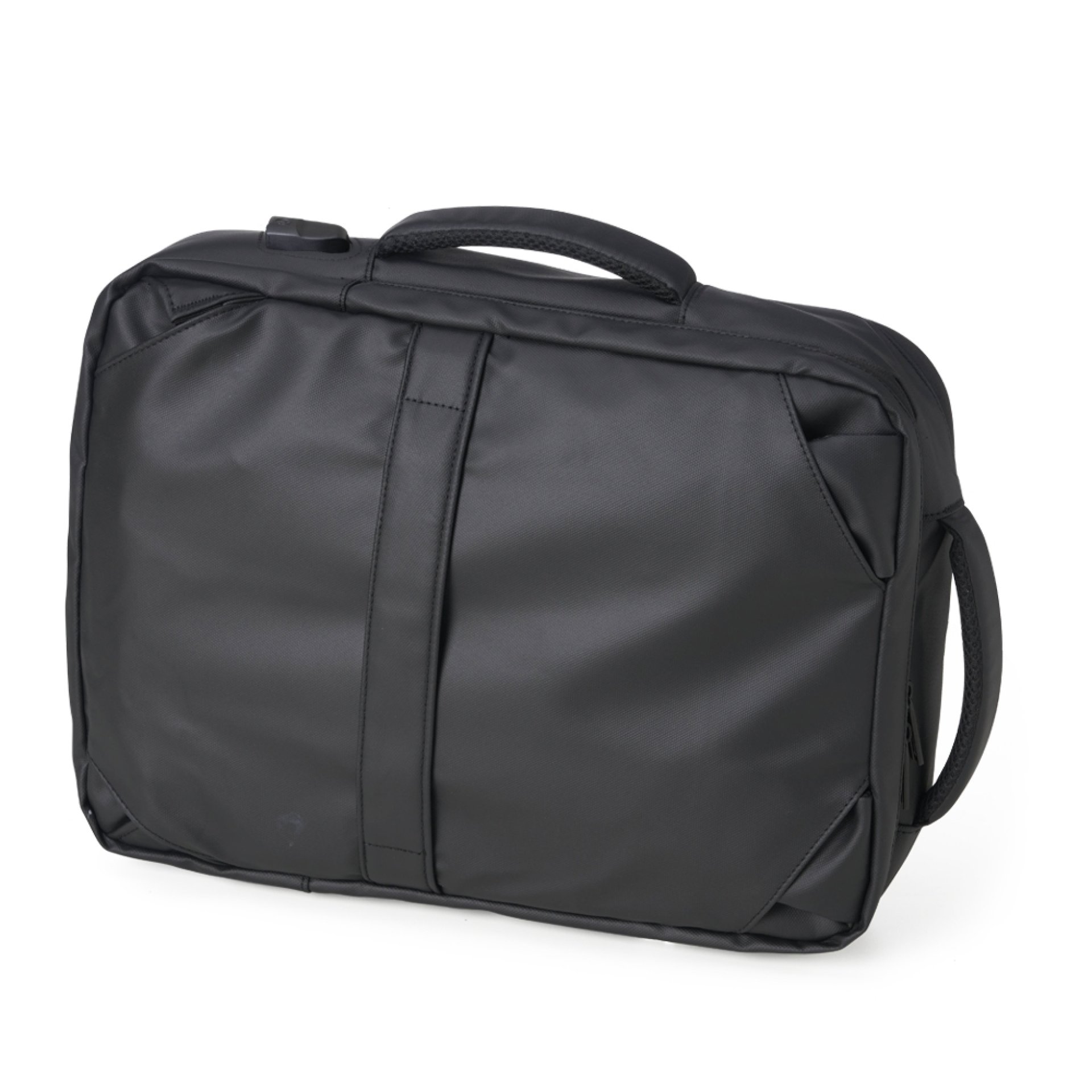 Descrição: Mochila em couro sintético 17 litros resistente à água com cinco compartimentos, sendo o principal com bolso para notebook 156. Com divisórias internas para acessórios, a mochila possui suporte externo usb, alça para encaixe em malas de viagem e duas alças de mãos, sendo uma delas lateral para o transporte da mochila no modo pasta.